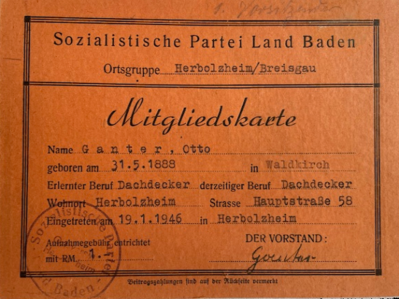 Als erster Vorsitzender wurde Otto Ganter gewählt, wie seine damalige Mitgliedskarte belegt. Im Herbst des Jahres 1946 erfolgte die Rückbenennung der Partei in SPD Baden. Inhaltlich orientierte sie sich an der unter Kurt Schumacher im Frühherbst 1945 gegründeten westzonalen Gesamtpartei der SPD.
